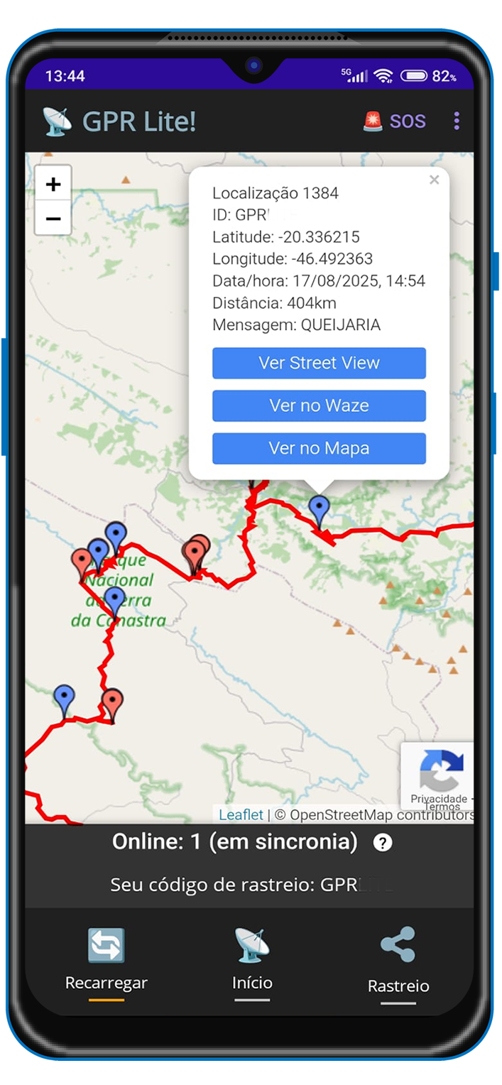 O GPR Lite utiliza a internet móvel para enviar suas coordenadas em tempo real, permitindo que você visualize sua localização no mapa de forma precisa e instantânea.